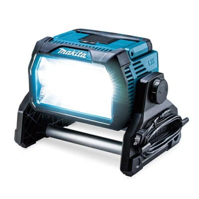光束10,000lmで暗い現場を広範囲に明るくします。照射範囲は前・横方向に約10mです。また240°の範囲でライトの角度を調整出来ます。更に、14.4V/18Vバッテリは同時に装着が可能です。
