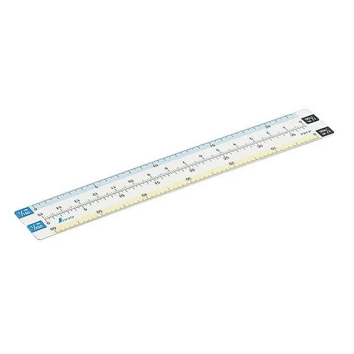 地積測量図や建物平面図など、登記手続きに必要な図面作成、読み取りに便利な、縮尺スケールです。