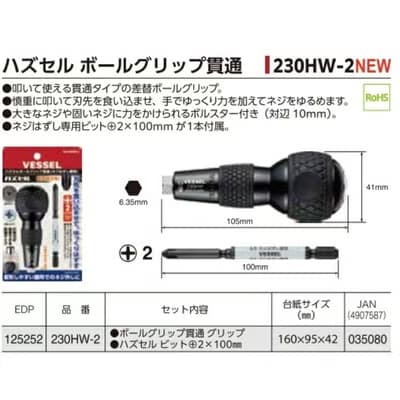 • ネジ外し専用ビット+2x100mmが1本付属(230HW-2)