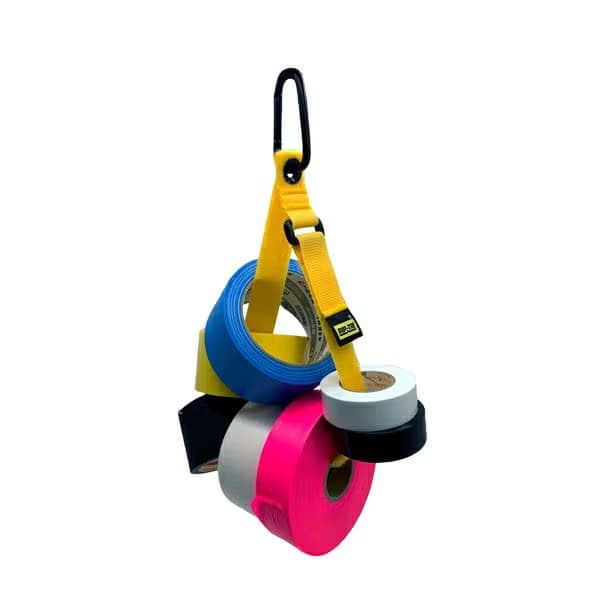 機材運搬用カートやラックに吊り下げてテープ類をスマートに管理