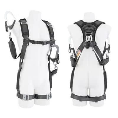 腰道具を付けたまま脱ぎ着ができ、ハーネスを使う時に胴ベルトを外す必要がありません。