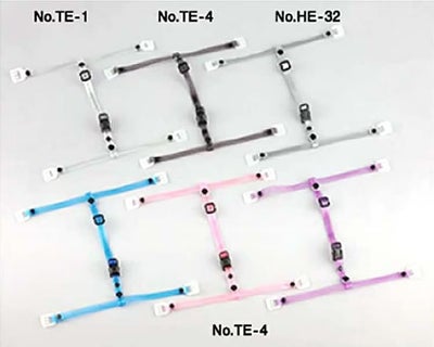 ヘルメットに取り付ける透明ビニール製ワンタッチ式のあご紐です。