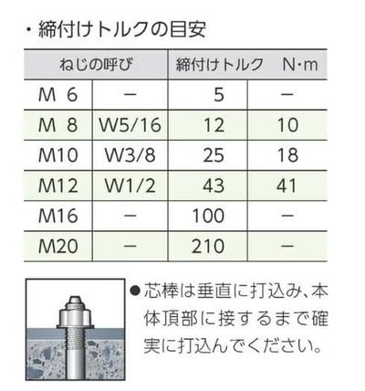 コンクリート孔にアンカーをセットして、芯棒を打込むだけの簡単施工の大工用部材です。建設工事、土木工事、電気工事、機械設備工事などに。